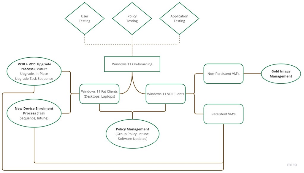 For example, both our physical Desktops/Laptops and VDI devices require a Policy Management solution. In most cases, Group Policy or Intune will be used for both set of services.