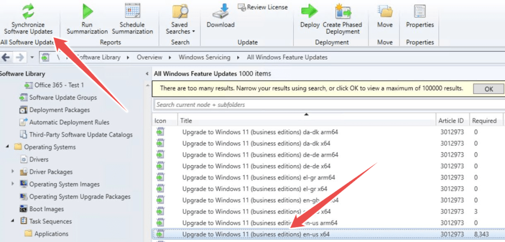 - Navigate to Software Library > Windows Servicing > All Windows Feature Updates