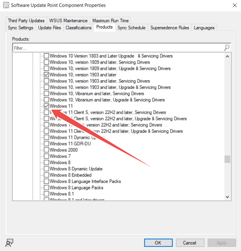 - Select the Products tab and Select Windows 11 as seen from the image below: